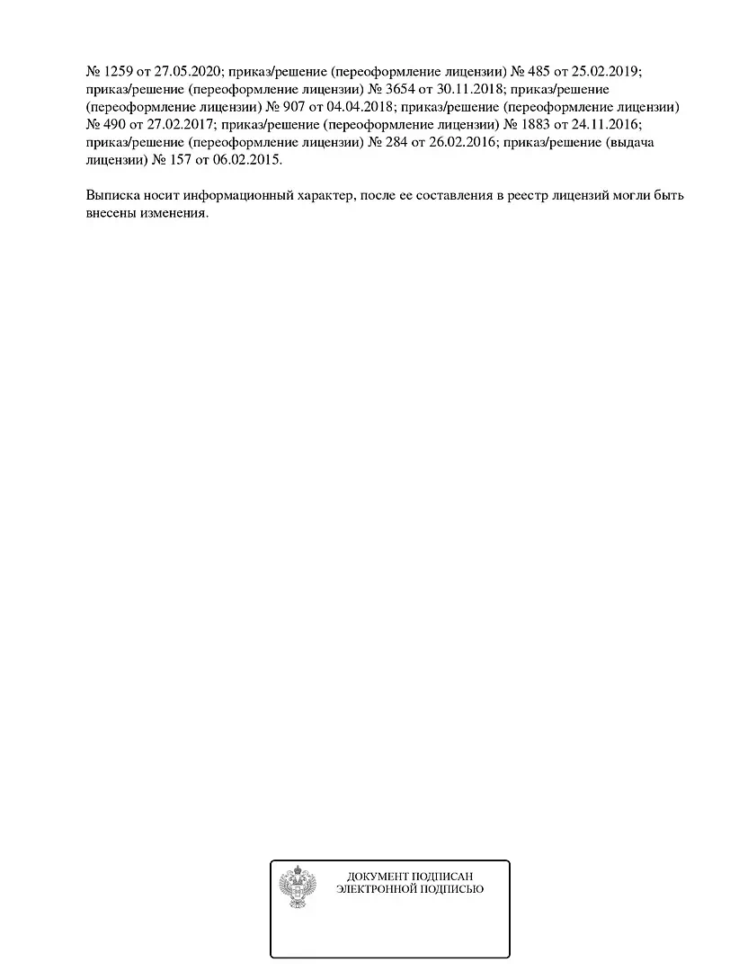 Окончание срока действия лицензии: бессрочно.