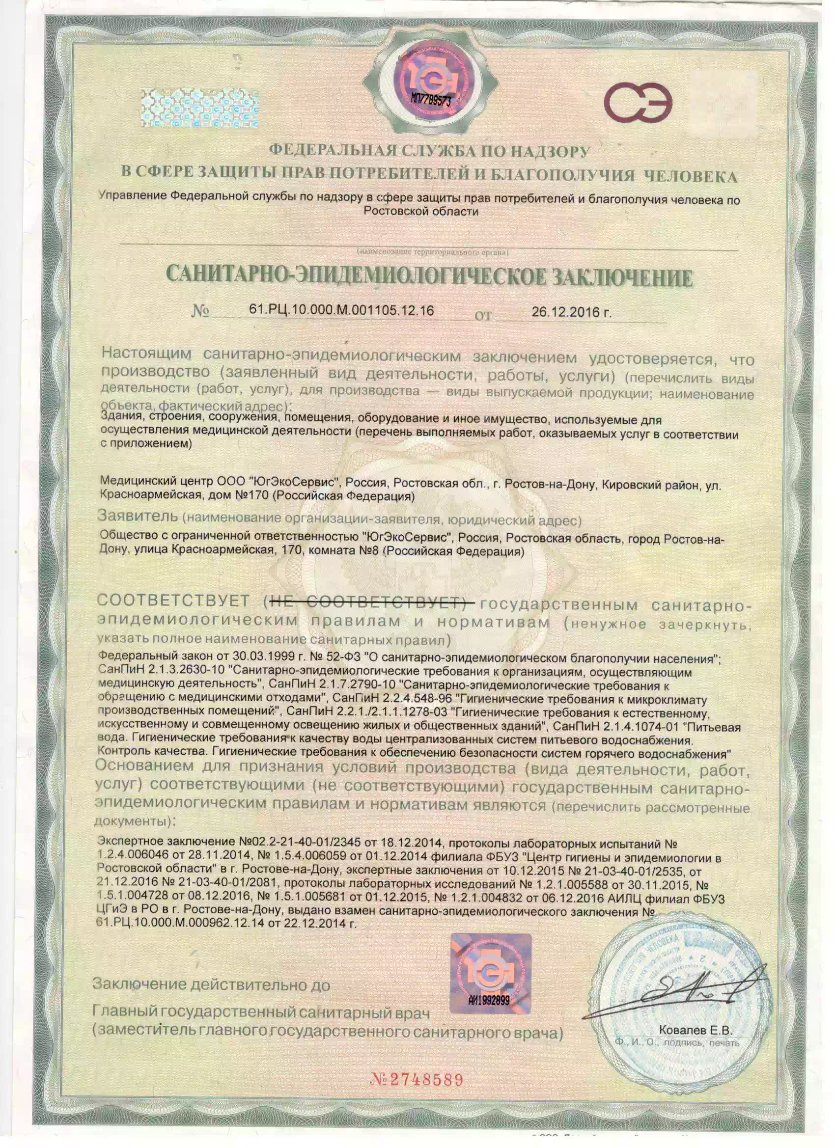 Лицензия на медицинскую деятельность Л041-01050-61/00357506 от 29.10.2020