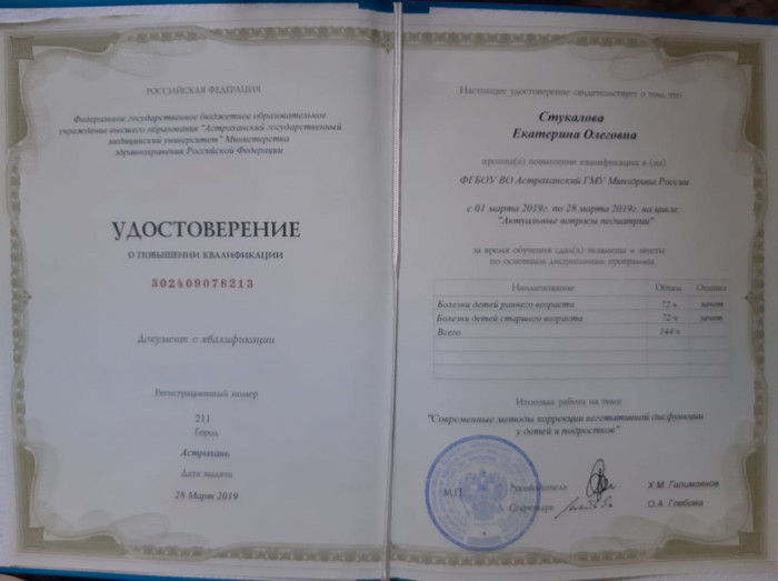 Психиатр-нарколог Екатерина Олеговна Стукалова специализируется на лечении игровой, никотиновой, алкогольной, компьютерной (интернет), наркотической зависимости с применением различных методик. Также проводит диагностику и лечение апатии, депрессии, неконтролируемой агрессии, булимии, анорексии, панических расстройств, страхов и фобий и других психических расстройств.